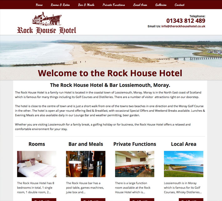 George Skelton of the Rock House Hotel in Lossiemouth asked me to build them a website that worked across multiple devices. I created the website with an easy to use interface whilst showcasing some of the beautiful view that Lossiemouth has to offer.